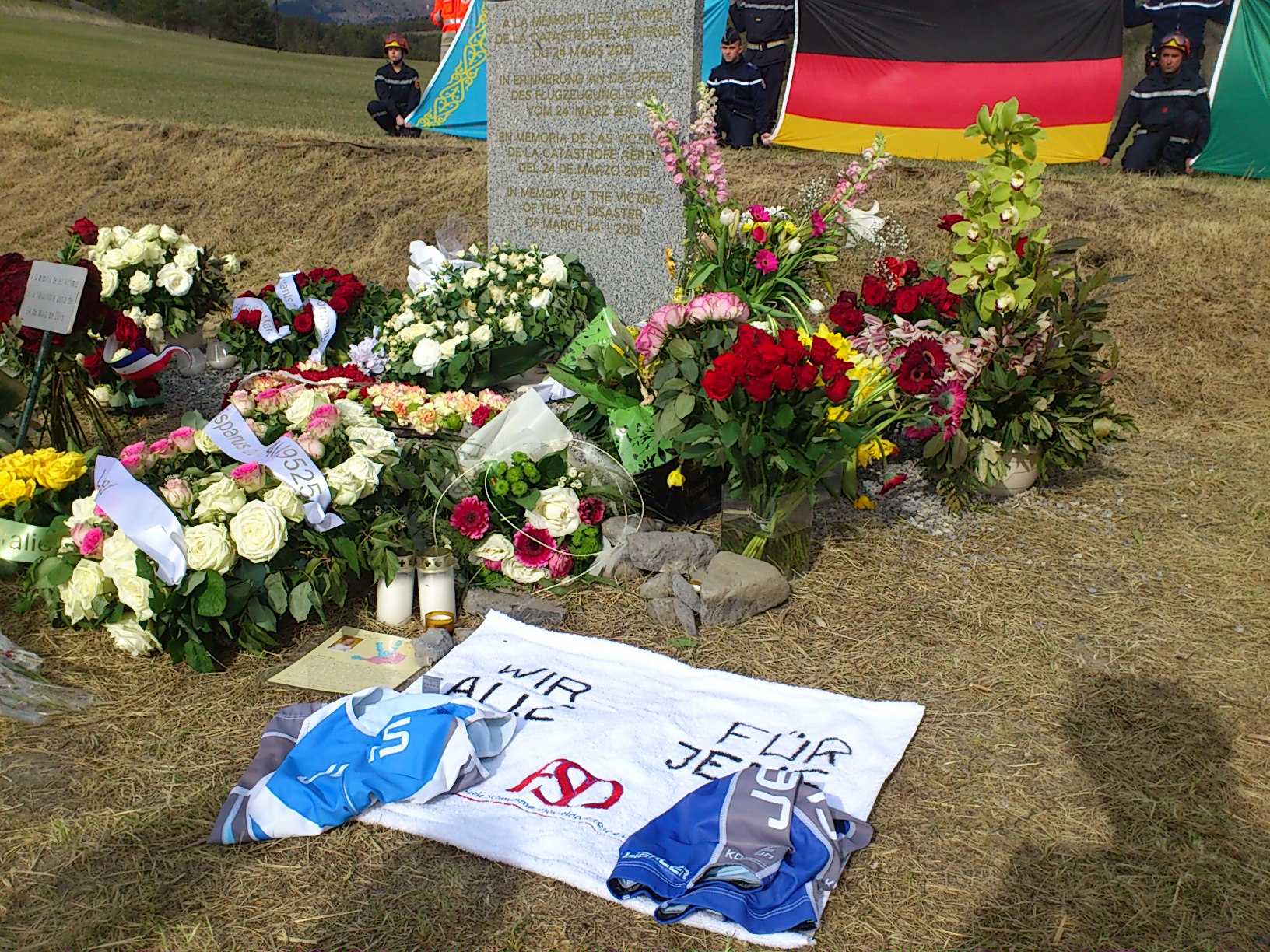 Die Drei, Melanie und Olli vom Düsseldorfer Triathlonverein kamen erst gestern aus Frankreich zurück. Auch sie standen vor der Stele in Le Vernet, nahe am Ort der Katastrophe. Sie schildern ihre Eindrücken und berichten, dass sie vor dem Gedenkstein den Triathlonanzug von Jens abgelegt haben. Er trug ihn gern bei seinen Wettkämpfen.