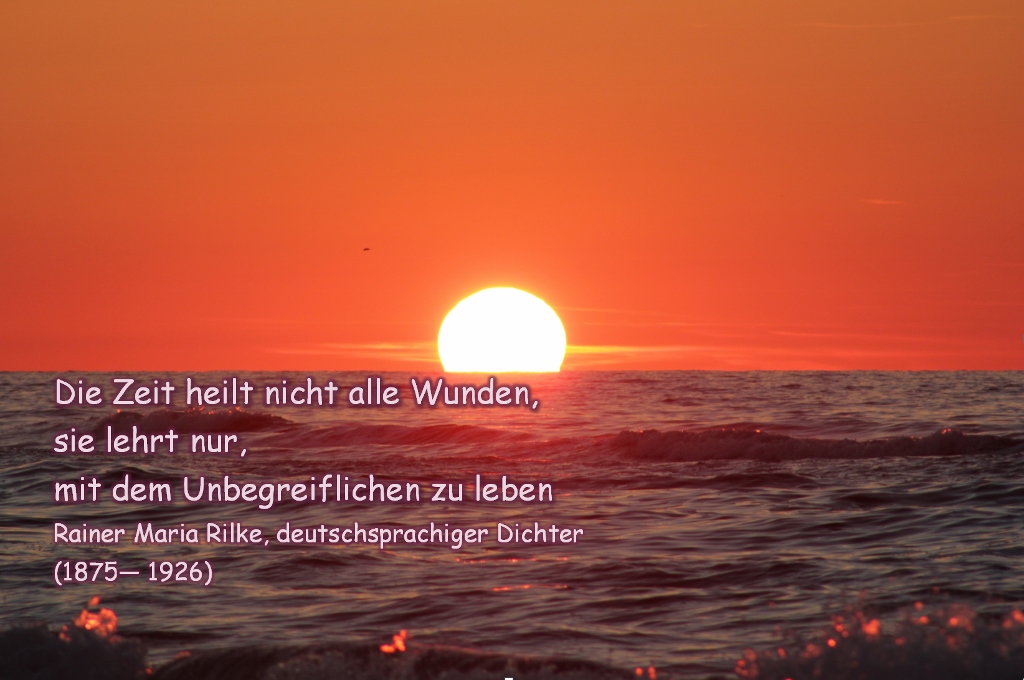 Oft erscheint es Außenstehenden unmöglich, dem Trauernden zu begegnen, weil sie nicht wissen, was sie sagen sollen. Schweigen und aufmerksames Zuhören sind Tugenden, die es in unserer Zeit kaum noch gibt. Für den Hinterbliebenen jedoch könnten sie hilfreich sein. Stattdessen fallen Floskeln, wie »Schaut nach vorn«,«Das Leben geht weiter«, »Schließt endlich ab«, »Es ist doch schon so lange her«, »Die Zeit heilt alle Wunden«, usw., die ihn zusätzlich belasten können. Derartige Bemerkungen bringt die Zeit mit sich. Die Betroffenen müssen sie ertragen. Nein, die Zeit heilt wahrhaftig keine Wunden, sie kann sie unter Umständen vertiefen.