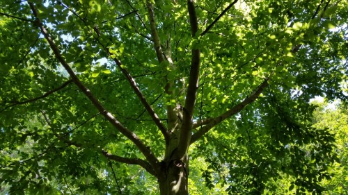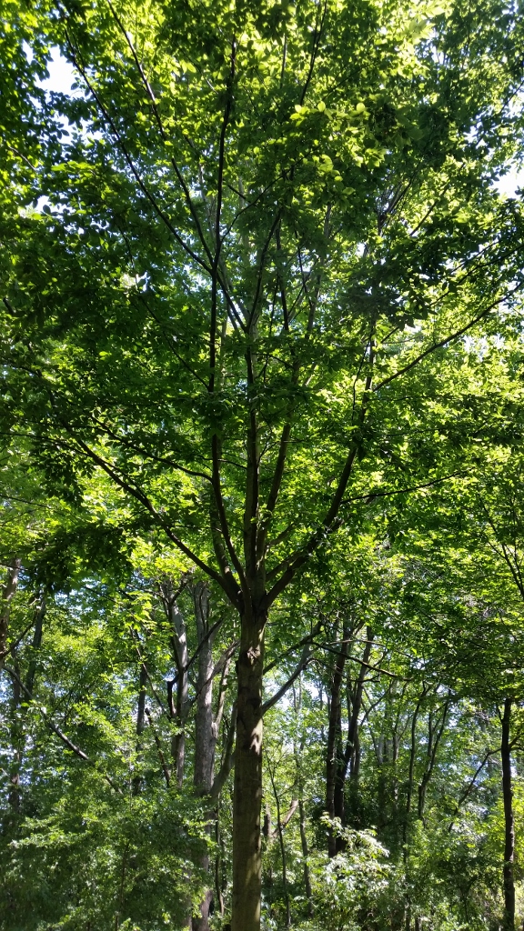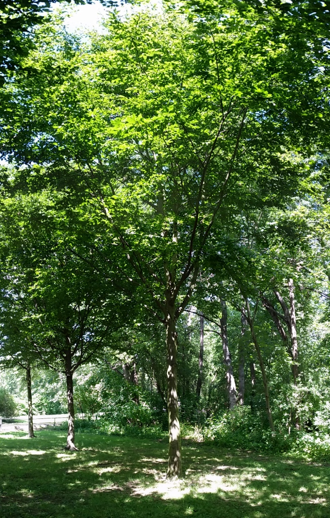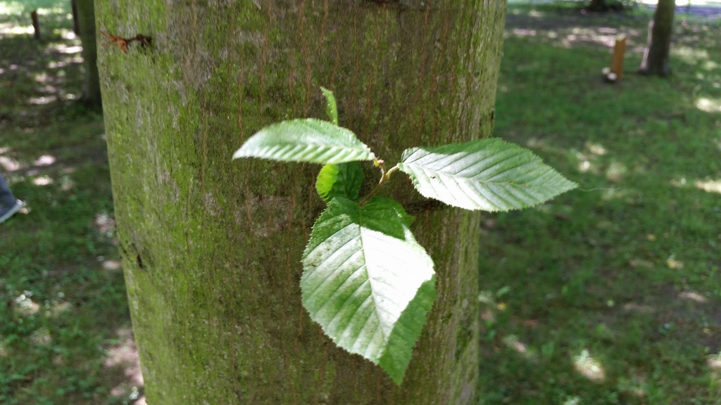 Den Baum haben wir bereits besucht. Es ist eine Hainbuche, die mir ausnehmend gut gefällt. Sie lebt auf einer Wiese, an deren Rand der Zug vorbeischnauft und dabei ein dampfendes Tuten erschallen lässt. Steht der Wind günstig, können wir es aus der Ferne auf unserem Balkon hören.