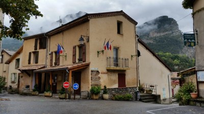 Als wir am Tresen bezahlen wollen, betritt Monsieur Bartolini, der Bürgermeister von Prads, das Restaurant. Sofort erkennt er uns und grüßt mit den üblichen Küsschen auf die Wangen. Wir unterhalten uns. Schließlich holt er aus der Mairie, dem Bürgermeisteramt, das sich gegenüber der Straße befindet, Prospektmaterial, anhand dessen er uns die nähere Umgebung erklärt. Wert legt er auf den Schulmeisterweg, den wir unbedingt wandern sollen. Er ist in einem Rundweg integriert, der an der Absturzstelle vorbeiführt.