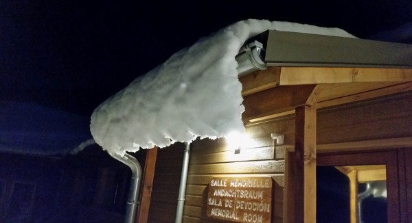 Die Kerze, die wir gestern angezündet haben und die sechs Tage brennen soll, ist unter den weißen Massen vollkommen verschwunden. Glücklicherweise haben wir eine Ersatzkerze mit.