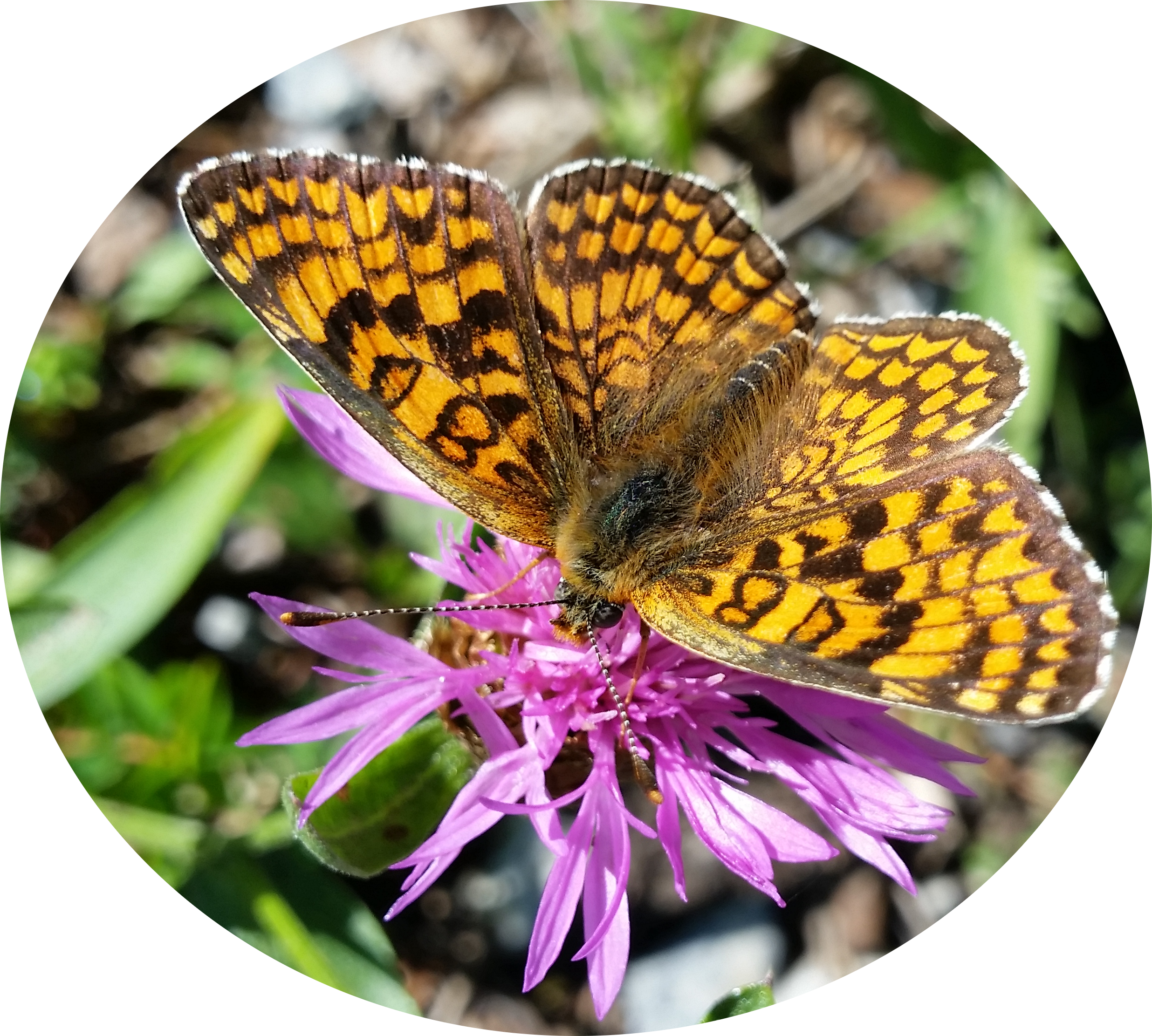 Auf der Rundwanderung begegnen uns Schmetterlinge. Wir versuchen, sie auf den Blüten zu fotografieren. Es werden mehr. Sie haben orange-braune Flügel, genau wie die, die dieses Jahr auf dem Campingplatz in Deutschland das erste Mal auftauchten. Jens hatte den Ort sehr geliebt. Er wuchs quasi in der Natur auf. Er träumte davon, ihn wieder zu sehen und in unserem