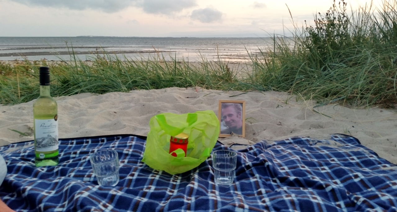 Die Umgebung verdunkelt sich. Wir sitzen, genießen den Wein und plaudern von Jens. Er feiert mit.