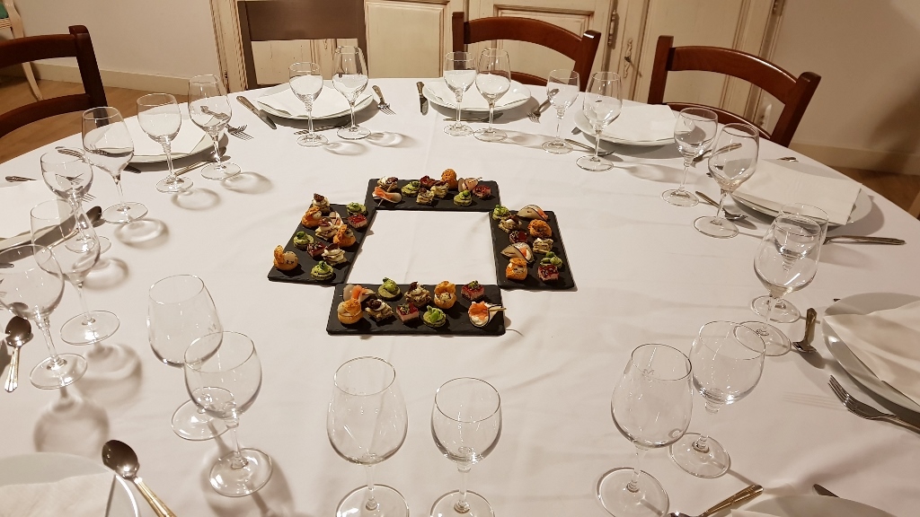 Häppchen werden gereicht. Michel teilt den von ihm hergestellten Wein mit uns, der gut schmeckt. 60 Liter hat er dieses Jahr produziert.