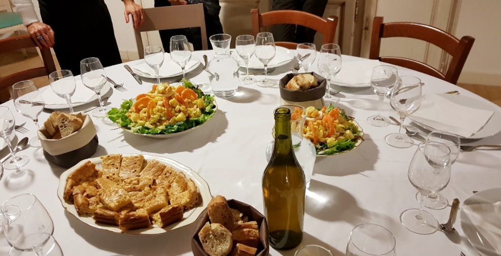 Wir nehmen am bereits eingedeckten runden Tisch Platz. Neben mir sitzt ein älterer Herr, der sich mit dem Namen Michel vorstellt. Er arbeitet trotz seiner 90 Jahre immer noch als Winzer und presst Olivenöl, ist geistig rege und beeindruckt mich. Er weint fast, als er beginnt, mit mir über den Flugzeugabsturz zu reden.