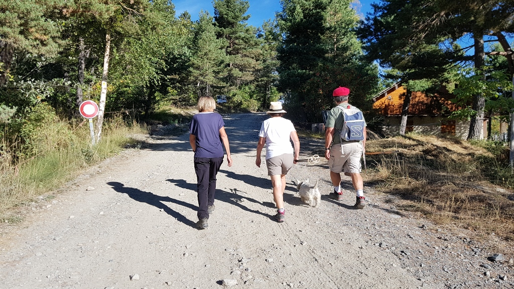 Gilles, seine Partnerin und ihr Hund holen uns ab. Wir wollen gemeinsam durch die Berge wandern. Wir saßen vor einigen Tagen auf der Terrasse vor dem Inattendu in gemütlicher Runde mit Hervé und anderen Dorfbewohnern zusammen. Dabei lernten wir die beiden kennen. Sie spricht ein für mich gut zu verstehendes Französisch, während er sich sogar auf Englisch verständigen kann, was in Frankreich selten vorkommt. Fremdsprachen sind für die meisten Franzosen ein Buch mit sieben Siegeln. Wir haben sein Angebot, sie auf einer Bergwanderung zu begleiten, gern angenommen. Nur befürchten wir, dass sie ein hohes Tempo anschlagen werden und uns die Strecke zu weit und schwierig sein könnte. In dieser Region wird oft vergessen, dass es Menschen gibt, die aus dem flachen Land kommen, wie wir.