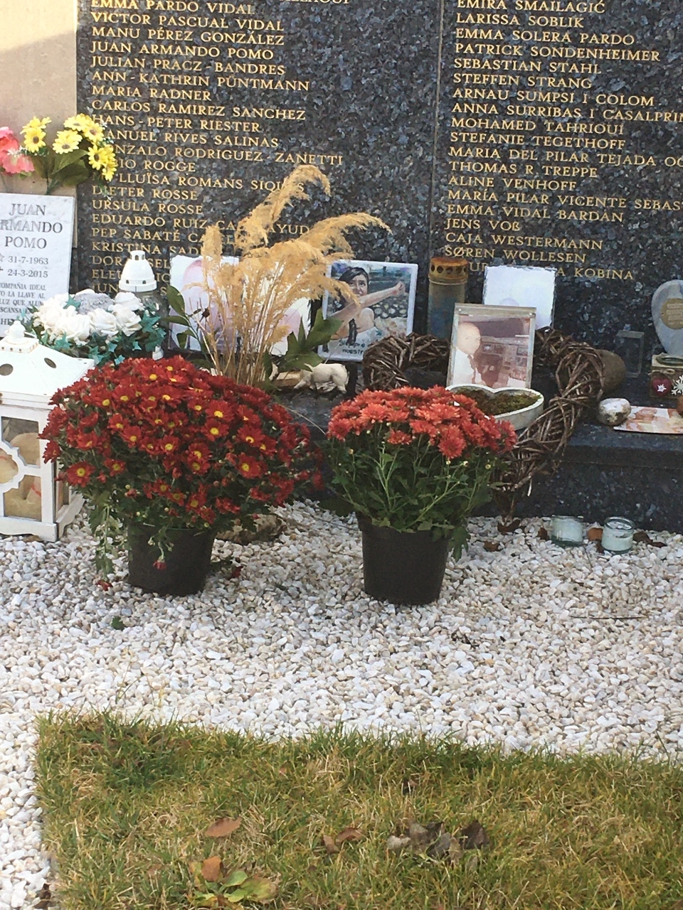 »Hallo Brigitte, ich denke an euch und ich weiß, dass ihr wegen COVID-19 nicht reisen könnt, wir haben den Friedhof zu Allerheiligen zu geschmückt, ich hoffe, dass bei euch alles in Ordnung ist.«
