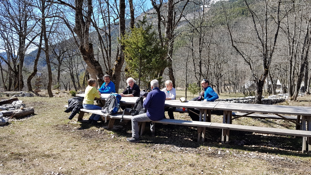 Der Abstieg beginnt. Die französischen Freunde schlagen vor, einen Abstecher nach Pié Fourcha, einen verlassenen Weiler, zu machen, um dort bei einem Picknick noch ein wenig zusammenzusein. Eine anschließende Wanderung lehnen wir freundlich ab. Danach ist uns nicht zumute.