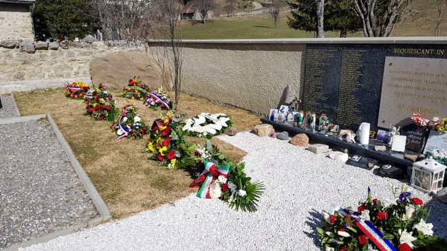 Der Nebel lichtet sich. Mit feuchten Augen finde ich mich wieder. Nach einer Weile kommt Hervé auf uns zu. Er und Gilles möchten uns umarmen. Plötzlich stehen wir zu viert im Kreis, die Arme auf den Schultern des Nachbarn. Diese Geste erfasse ich mit voller Klarheit. Ich bin dankbar. Das Schicksal der Angehörigen lässt die Bewohner der Umgebung nicht kalt. Doch auch für sie wird der Flugzeugabsturz ein einschneidendes Erlebnis bleiben.